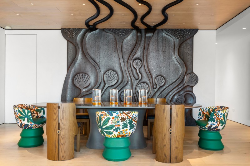 No corner of the condo was left untouched: coral-inspired bedroom walls echo Miami’s coastal environment, and custom furnishings blur the line between function and form.