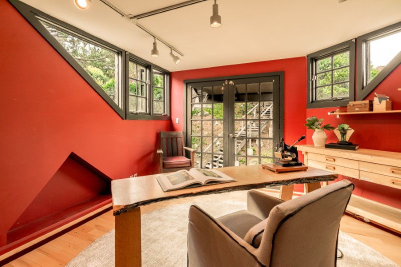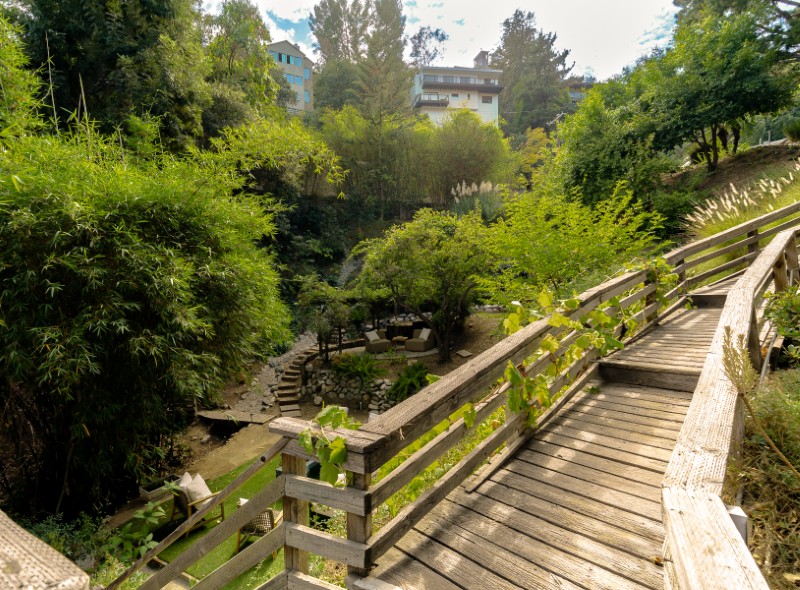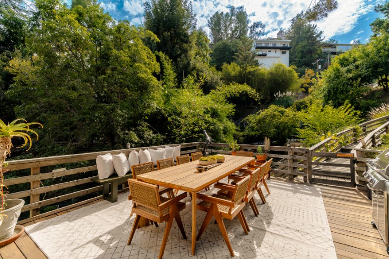 A red oak deck, bonus art studio, and manicured garden spaces round out the setting, creating a private oasis just minutes from the vibrancy of Beachwood Canyon and downtown Hollywood.
