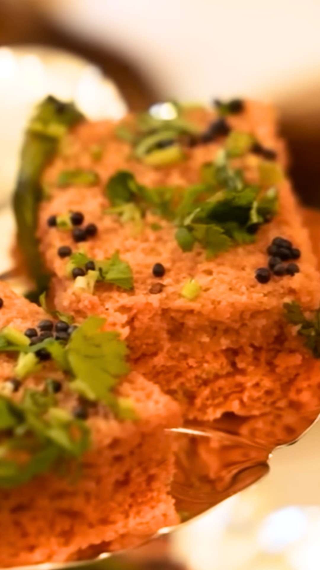 Serve the dhokla hot, with fresh green chutney or sweet tamarind chutney on the side.